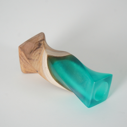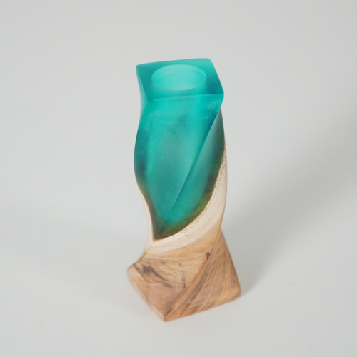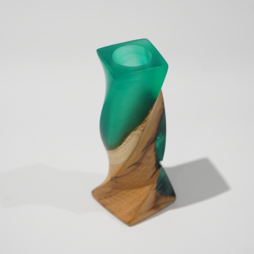 - 木製 一輪挿し(ガラス管付き)【緑デザイン】|茨城県産 大子町 花瓶 フラワーベース インテリア 一輪挿し ハンドメイド作品 レジン 緑 木製 木材(BH018)