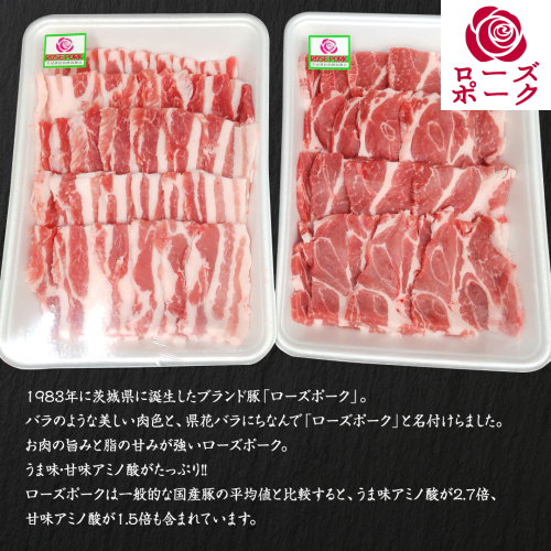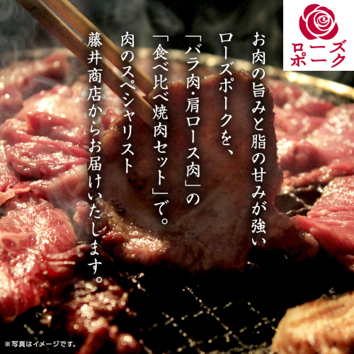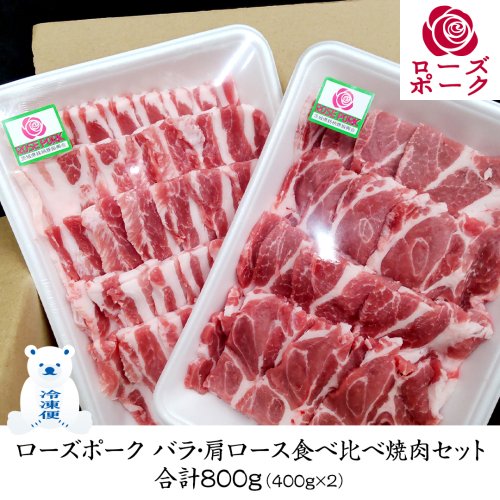 ローズポーク バラ ・ 肩ロース 食べ比べ 焼肉 セット 合計 800g ( 400g ×2 ) (茨城県共通返礼品) 茨城県産 ブランド豚 豚 豚肉 肉 国産 国産豚 バーベキュー BBQ 豚肩ロース ロース 冷凍 小分け 藤井商店[CD061sa]