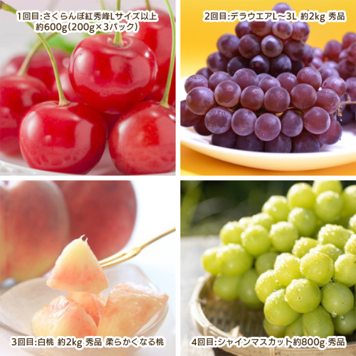 山形の人気のフルーツを4回の定期便に分けてお送りいたします。