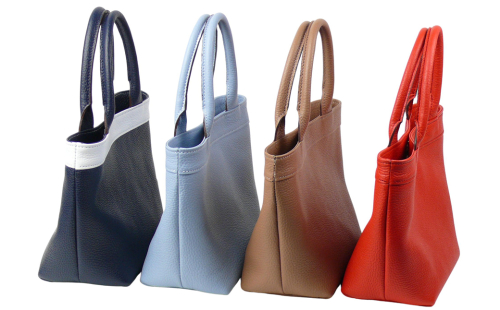 - 持つ人の雰囲気を引き立てる、シュリンク革製舟形トートバッグ (スカイブルー)