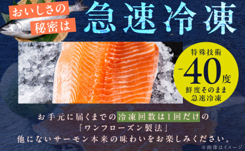 ノルウェーから世界No.1サーモンメーカー(※Kontali Analyse 調べ)の「空飛ぶサーモン」を、生のまま関西空港まで空輸!空港近くの工場ですばやく加工しているので鮮度が抜群です。当社の泉佐野市工場にて、素材のフレッシュ感を損なわないよう特殊技術を活用した「急速冷凍」によって仕上げました。