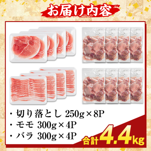 K-469-D 鹿児島県産 さつま黒豚3種盛り(計4.4kg)【ふるさと産直バザール】霧島市 モモ バラ 切落し 黒豚 国産 鹿児島県産 肉 精肉