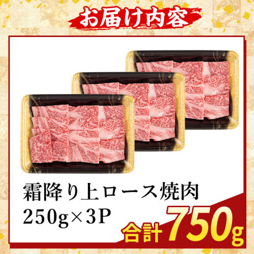 K-482-C 鹿児島県産A5等級黒毛和牛霜降り上ロース焼肉(計750g)【ふるさと産直バザール】霧島市 牛肉 国産 鹿児島県産 ロース 焼肉 肉 精肉