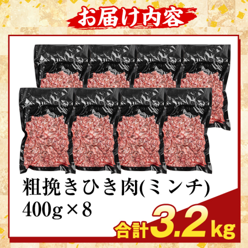 K-488-C 鹿児島県産A5等級黒毛和牛粗挽きひき肉(ミンチ)(計3.2kg) 【ふるさと産直バザール】霧島市 牛肉 国産 鹿児島県産 ひき肉 粗挽き 肉 精肉