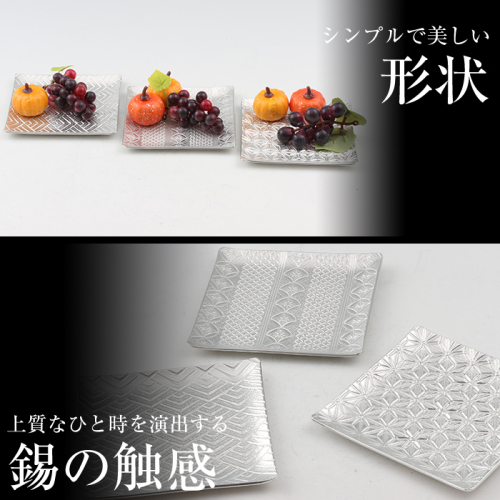 D5-013 薩摩錫器 切子小皿角形3枚セット【薩摩錫器工芸館】 207908 - 鹿児島県霧島市