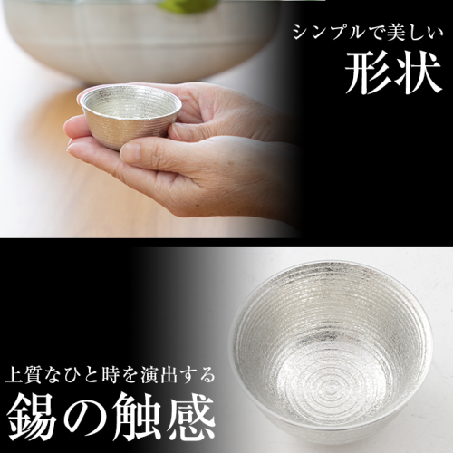錫器の重みと、質感が手になじむちょうどよいサイズのぐい呑みです。