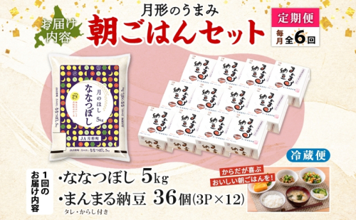 - 【6ヶ月定期便】北海道 月形 のうまみ 朝ごはんセット まんまる 納豆 36個 ななつぼし 5kg お米 保存料不使用 安心 安全 手作業 美味しい 大粒 タレ付 からし付 お取り寄せ 送料無料 エーコープつきがた 月形町