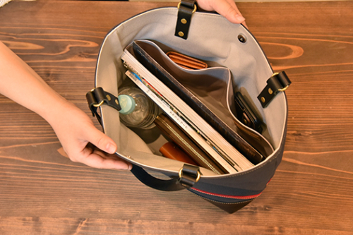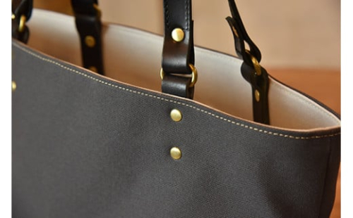 - 帆布と革のトートバッグ 近江牛レザー 地産帆布使用 アイアングレー【CC36W】