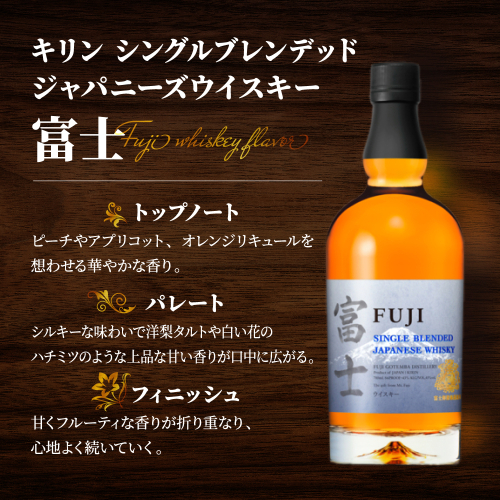 全ての原酒を同じ富士の伏流水、作り手、自然環境で造り込み、熟練のブレンド技術が生んだ「味わいまで美しい」多彩な香味の調和を追求したシングルブレンデッドジャパニーズウイスキー「富士」。
