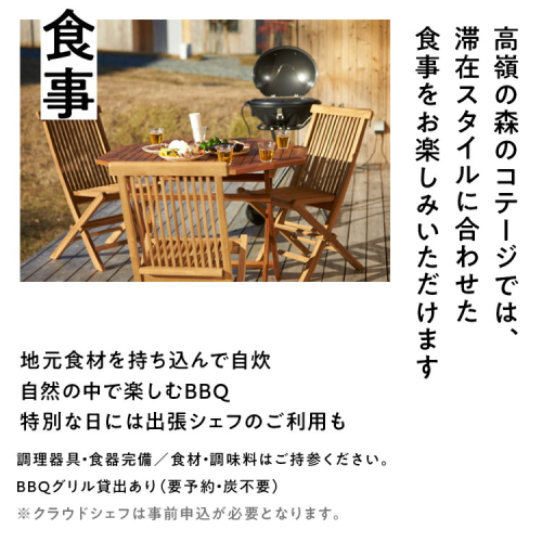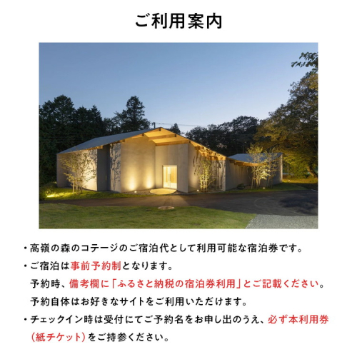 ※高嶺の森のコテージのご宿泊代として利用可能な宿泊券です。