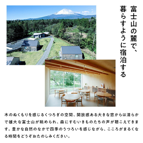 富士山に見守られながら、森の時間の流れに身をゆだね、ゆったりとした安穏な時間をお楽しみください。