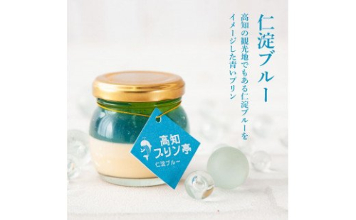 高知県の自然をイメージしたプリンと定番プリンのセットです。・マダガスカル産の超高級天然バニラビーンズ、国産素材を使用した飲めるほどなめらかなプリン・昔懐かしいしっかり固めのプリン・高知の観光地でもある仁淀ブルーをイメージした青いプリン