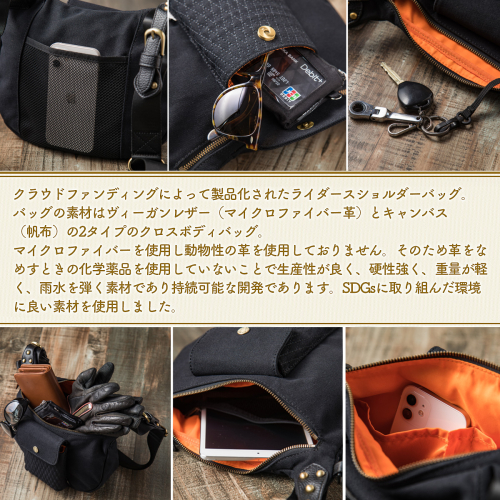 クラウドファンディングによって製品化されたライダースショルダーバッグ。