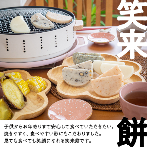 子供からお年寄りまで安心して食べていただきたい。焼きやすく、食べやすい形にもこだわりました。見ても食べても笑顔になれる笑来餅です。