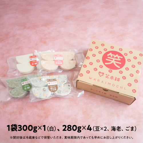 笑来餅 5個 セット(豆2、白、エビ、胡麻) 餅 もち もち米 豆餅 落花生 エビ [EP007ci]