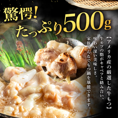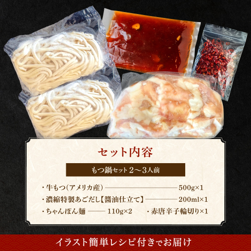 A1516.魚住商店あごだし【醤油仕立て】もつ鍋セット2~3人前、満足もつ増量500g【もつ鍋・醤油味】
