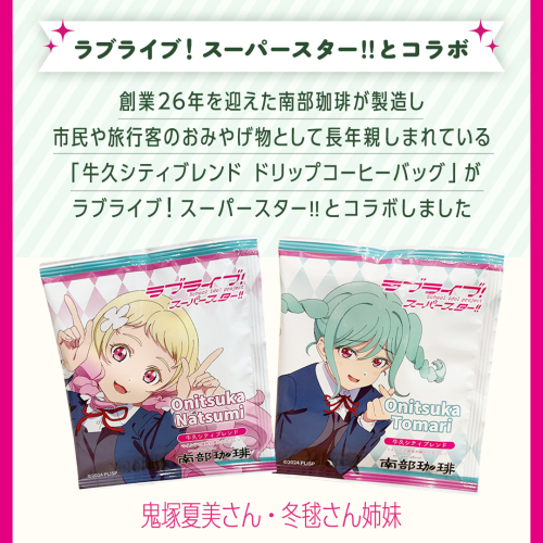 - 牛久シティブレンド ドリップコーヒーバッグ( ラブライブ!スーパースター!! 冬制服Ver)4種セット ラブライブ アニメ コーヒー 珈琲 ドリップ コラボ 広報大使 鬼塚姉妹 Liella! 鬼塚夏美 鬼塚冬毬 オリジナル 限定 牛久市