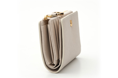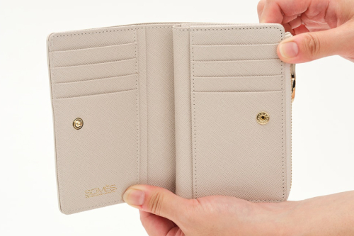 優しげな丸角シルエットのL字ファスナー「二つ折り財布」。