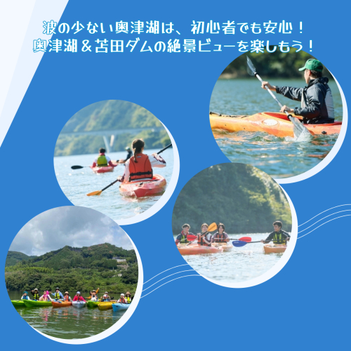 波の少ない奥津湖は、初心者でも安心してパドルスポーツを楽しめる湖です。 解放感を味わえる抜群の自然環境の中で、奥津湖&苫田ダムの絶景ビューをお楽しみいただけます。 カヤックのエキスパートのインストラクター付きですので、初心者の方でも無理なく安心して体験できます♪ 下から見る苫田大橋は迫力満点ですよ! ※5月開始時期から11月下旬頃まで 【地場産品基準】 7:鏡野町内で提供される役務等であり、その役務の主要な部分が鏡野町に関連するもの