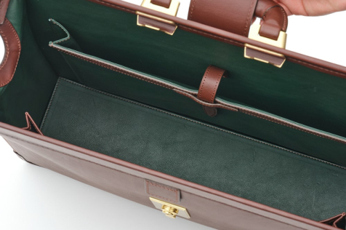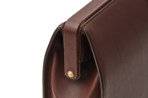 革の重なる部分は厚みがでないように革を削いで重ね、一番荷重のかかる口枠まわりは手縫いで堅牢に仕上げています。