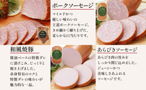 - ・和風焼豚 250g ・ポークソーセージ 230g ・あらびきソーセージ 230g