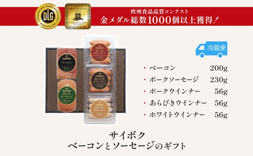 ベーコンとソーセージのギフト セット 贈り物 こだわり 豚肉 ゴールデンポーク 加工品 簡単調理 おつまみ おかず お弁当 朝食 定番 サイボク 埼玉県 鳩山町