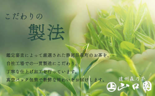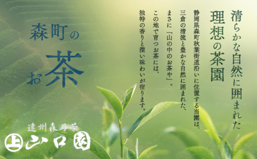 【配送不可:離島】 静岡県遠州森の茶「かおり」は、5月上旬に収穫した柔らかな新芽をしっかり火入れし、甘みを引き出した上煎茶です。 「深蒸し煎茶」は、お茶製造の蒸し時間を長くすることで、渋味が抑えられまろやかな味になります。 ■返礼品の地場産品基準■ 森町で製造