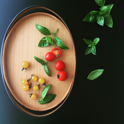 【秋田県を代表する2つの伝統工芸がコラボしたトレイ】 樺細工と大館曲げわっぱという秋田県の2つの伝統工芸がコラボレートしたトレイです。 曲げわっぱをベースにして、その周囲に桜皮を貼った帯を重ねました。 桜皮(山桜の樹皮)と秋田杉の2色構成によって美しいコントラストを生むと同時に、樺細工独特の表情を際立たせています。 両側の帯を反り上げて少しずらすことで持ちやすくなり、見た目もスタイリッシュで軽快な印象になっています。 デザイン:橋本夕起夫 ■ 秋田県 仙北市 ■ 伝統工芸品 山桜 ヤマザクラ 桜皮 樺細工 かばざいく カバザイク