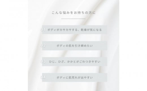 年齢を重ねることによる変化が肌に見られるのは、顔もボディも同じです。だからこそ、敏感肌でも安心して高みを目指せる、meethのスキンケアメソッドをボディにも。摩擦レスでするすると伸びるなめらかなテクスチャーで、マッサージしながらなじませれば、もっちりとしたハリとツヤ、クリアなうるおいの宿る肌に。入浴後すぐに塗布することで、効率的にうるおいを閉じ込めることが可能です。ダマスクローズの芳香蒸留水による、ほのかな天然ローズの香り。