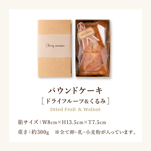 パウンドケーキ「ドライフルーツ&くるみ」007CM02N./無添加 スイーツ パウンド ケーキ 個包装 ギフト プレゼント お菓子 焼き菓子 洋菓子 おかし お取り寄せスイーツ デザート 贈り物 Cherry mamma(ちぇりーまんまのスイーツ工房)