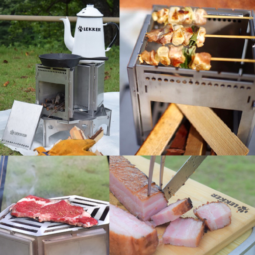 友人やファミリーなどと楽しむのにちょうど良いサイズ。勢い良く燃え上がる炎だけでなく、スモークや薪・炭を使用した調理もできます。