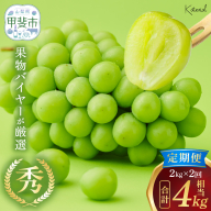 【来年(2026年/令和8年)発送<先行予約>】定期便 シャインマスカット 2房 約1.3kg 2回 計4房 先行予約 先行 予約 山梨県産 国産 産地直送 人気 おすすめ 贈答 ギフト お取り寄せ フルーツ 果物 くだもの ぶどう ブドウ 葡萄 シャイン シャインマスカット 新鮮 甘い 皮ごと 山梨 甲斐市 AD-247