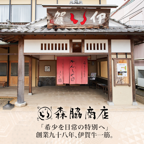 昭和2年創業 伊賀牛老舗森脇商店がお届けする、霜降り鮮やかな伊賀牛の肩ロース肉をすき焼き用にスライスしました。 伊賀牛特有の芳醇な風味をぜひご堪能生ください。(パール皿でお届けします)