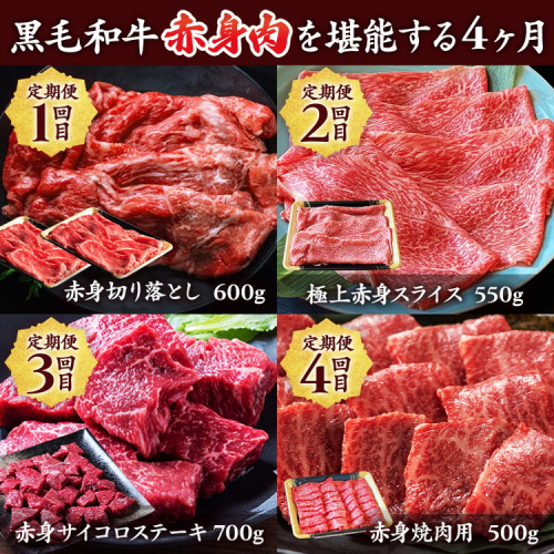 - 【4回定期便】京都産 黒毛和牛赤身肉 4ヶ月 お楽しみセット【計2.35kg】1回 500g~700g 和牛 専門店 ひら山 厳選 赤身 しゃぶしゃぶ すき焼き サイコロステーキ 焼肉 ステーキ 切り落とし スライス 牛肉 和牛 冷凍 丹波産 A5 A4 ふるさと納税 牛肉 定期便
