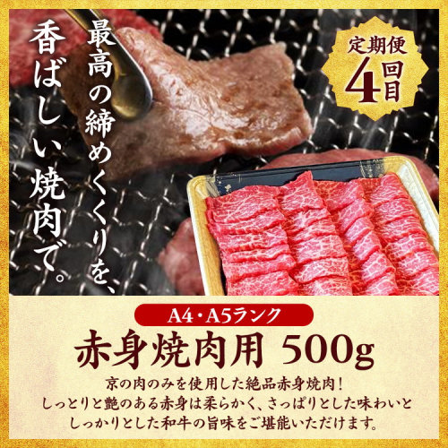 【4回定期便】京都産 黒毛和牛赤身肉 4ヶ月 お楽しみセット【計2.35kg】1回 500g~700g 和牛 専門店 ひら山 厳選 赤身 しゃぶしゃぶ すき焼き サイコロステーキ 焼肉 ステーキ 切り落とし スライス 牛肉 和牛 冷凍 丹波産 A5 A4 ふるさと納税 牛肉 定期便