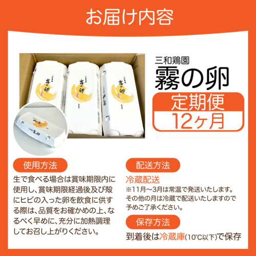 - 【12回定期便】新鮮 卵 120個(100個+卵割れ保証20個)(10個×12パック)京都丹波『霧の卵』三和鶏園 ≪たまご タマゴ 玉子 生卵 鶏卵 小分け 贈答 ギフト ふるさと納税 卵 直送 冷蔵 朝食 料理 人気≫ ※北海道・沖縄・離島への配送不可