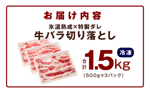 焼肉用 牛バラ 切り落とし 1.5kg【500g×3P 氷温熟成×特製ダレ 小分け 味付き プルコギ 牛肉 ファミリー向け】 mrz0135