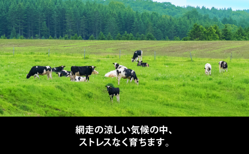産地である牧場は、能取湖を見渡せる小高い丘にあり、潮風が吹く丘で育つ牛は他の牧場に比べ、涼しくストレスフリーな環境で育てられています。
