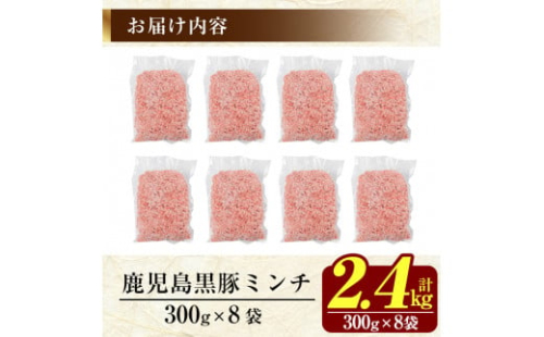 • K-128 《訳あり》数量限定!鹿児島黒豚ミンチ計2.4kg(300g×8袋) 【米平種豚場ふくふく黒豚の里】霧島市 国産  豚肉 豚 ミンチ 豚ミンチ ひき肉 挽き肉 冷凍 小分け