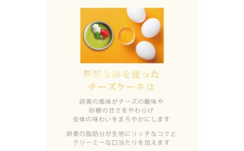 濃厚な北海道十勝産クリームチーズ+生クリームに加え、卵には京都府舞鶴市西方寺「赤岩高原」の有精卵を使用し、自然豊かな地で育まれた新鮮な味わいをお届けします。