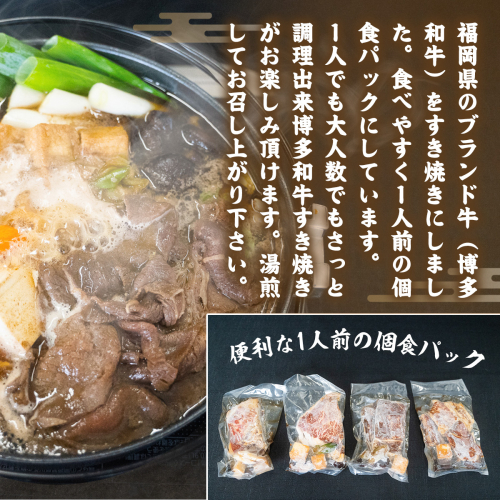 1人でも大人数でもさっと調理出来博多和牛すき焼きがお楽しみ頂けます。湯煎してお召し上がり下さい。