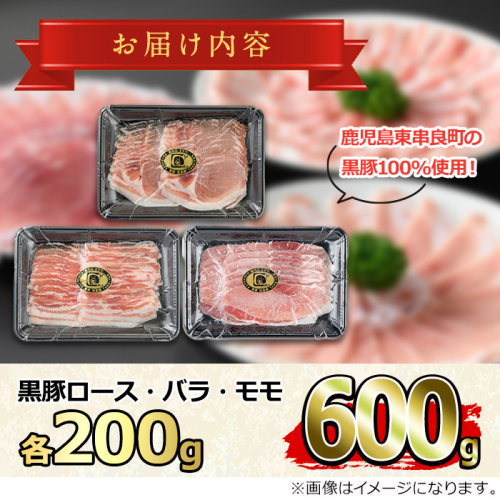【0175129a】サクラ農場の鹿児島黒豚!しゃぶしゃぶ味比べセット(ロース・バラ・モモ)(計約600g・各種200g) 国産 黒豚 豚肉 ぶた肉 短鼻豚 冷凍 冷凍配送 【鹿児島ますや】