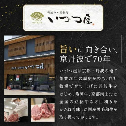 いづつ屋は京都・丹波の地で創業70年の歴史を持ち、自社牧場で育て上げた丹波牛をはじめ、京の肉、亀岡牛、京都肉または全国の銘柄牛など目利きをかさね吟味した国産黒毛和牛を取り扱っております。霜降りの見た目にとらわれず、本当に旨い赤身肉を追求しつづけています。