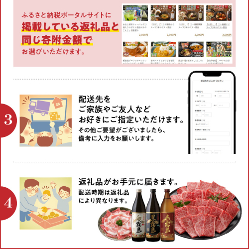 ■ あとからセレクト【ふるさとギフト】は、ふるさとギフト券にご寄附いただき、後日、交換サイトにて、肉・焼酎など、都城市自慢の返礼品に交換することが可能です。
