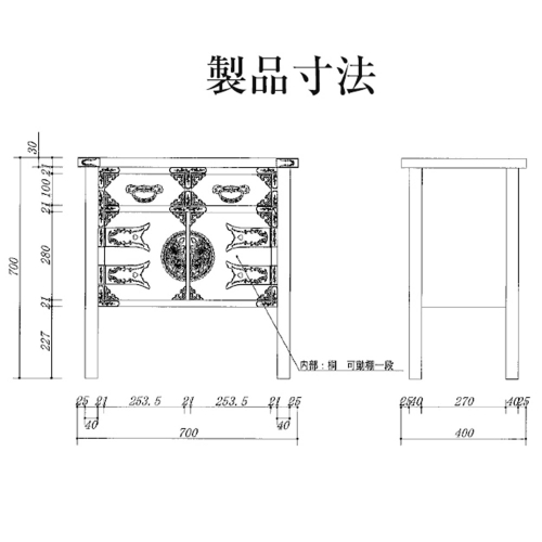 「リビングルームに仙台仏壇を」そんな選択をされる方も多くなってきました。 離れた場所の仏間ではなく、生活スペースに合わせて身近な場所に設置できる上置きタイプのお仏壇が人気です。 仙台仏壇は仙台箪笥と組み合わせることで、インテリアの趣がさらに増します。 「仙台箪笥 両開コンソール」は上置き型のお仏壇やお厨子を設置する下台として最近特に人気があります。 脚付のデザイン、気軽に水拭きが出来る木地呂漆調ウレタン仕上げ、そして仙台箪笥の独特な飾り金具が、リビングルームに置いてもステキな印象です。 お客様をお迎えする玄関ホールでも、季節のお花を置いたり節句飾り台にしたりと大活躍します。 ■ 宮城県 利府町 ■ 仙台箪笥 タンス たんす 小型 高級 工芸品 伝統