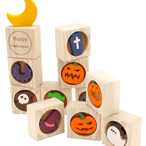 木から生まれた可愛いハロウィーン飾りです。ブロックを自由に配置できます。