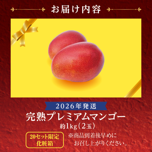 【2026年発送】完熟プレミアムマンゴー約1kg(化粧箱)2玉