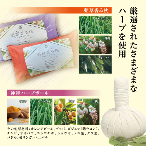 薬草香る枕2個&沖縄ハーブボール I 薬草 枕 ハーブボール セット リラックス 癒し グッズ ギフト 2個 沖縄県 南城市 ふるさと納税 沖縄長生薬草本社