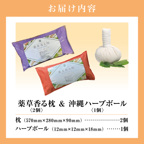 • 薬草香る枕2個&沖縄ハーブボール   I  薬草 枕 ハーブボール セット リラックス 癒し グッズ  ギフト 2個   沖縄県 南城市 ふるさと納税 沖縄長生薬草本社