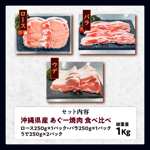沖縄あぐー焼肉食べ比べ(ロース、バラ、ウデ)総重量1Kg